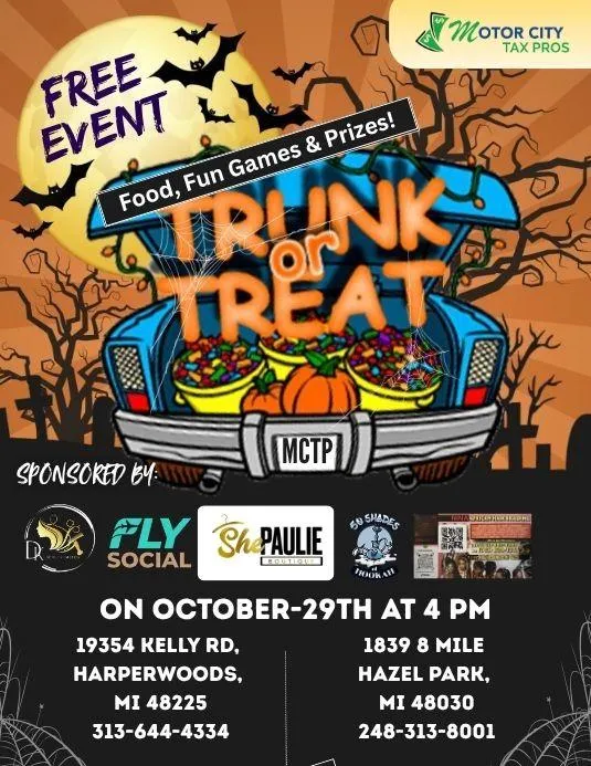 Get ready for an unforgettable evening of Halloween fun and community connection! Our Trunk or Treat event is designed for families to come together and celebrate safely. You can expect rows of creatively decorated car trunks packed with candy, fun games for kids and adults, delicious free food, and exciting prizes throughout the evening.